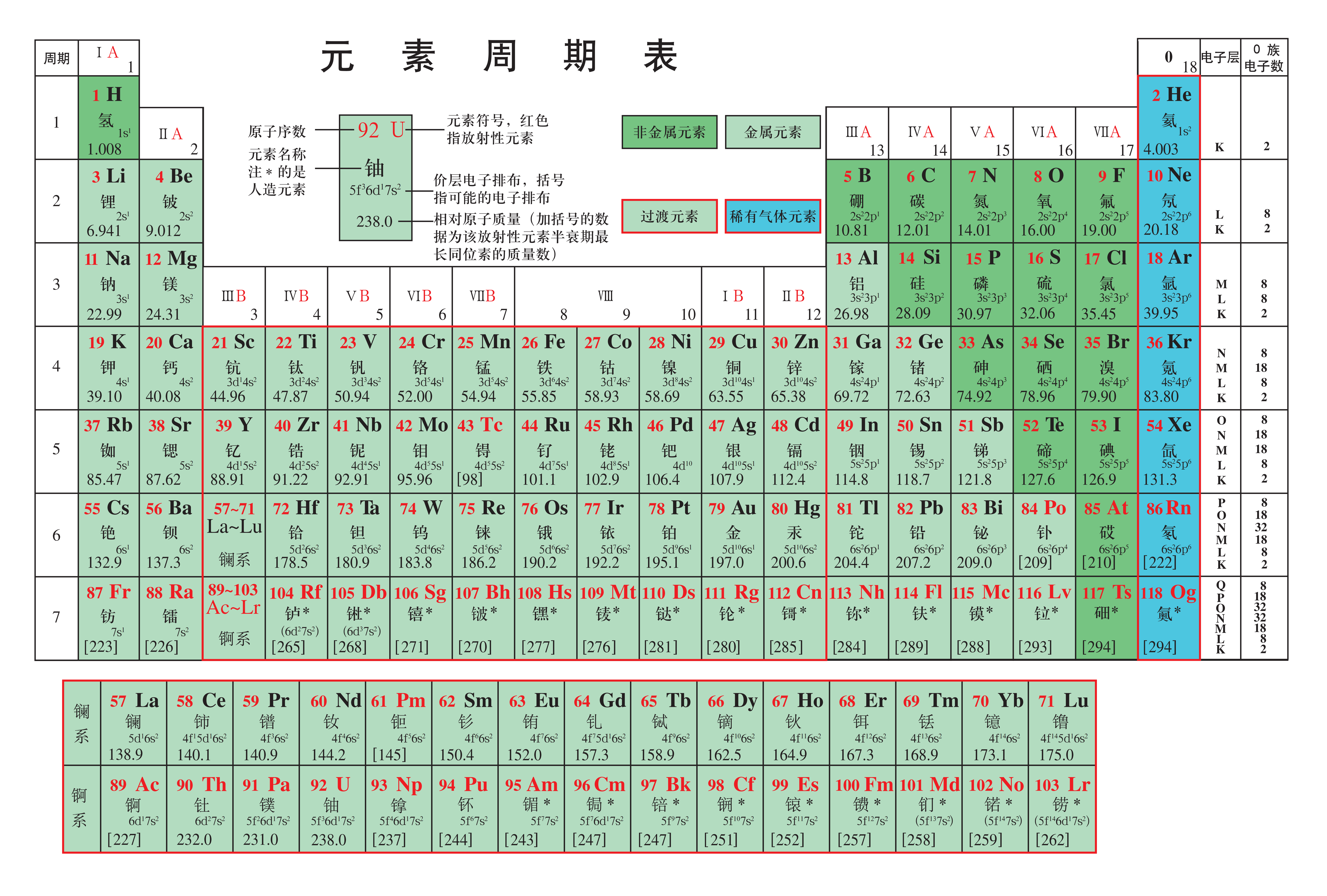 ( 轨道全满)以及 镧系、锕系 族(8、9、10 列): 能级的电子数之和 族: [ 轨道为全充满状态] 镧系/锕系: