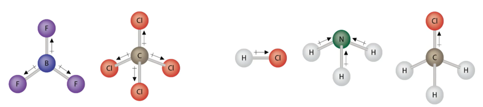 极性共价键:由不同原子形成的共价键,电子对会发生偏移(向电负性大的一侧偏移)。极性键中的两个键合原子,一个呈正电性(