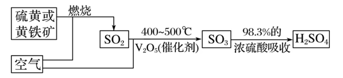 )或其它含疏物(如黄铁矿 )为原料来制备硫酸。金属冶炼时产生的含二氧化硫废气经回收后也可用于制备硫酸 或 (一般工业上不用水吸收三氧化硫,而是使用二氧化硫,因为三氧化硫溶于水大量放热,水沸腾形成酸雾,酸雾随着气流离开,减少对三氧化硫的吸收效果)